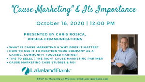 In partnership with Lakeland Bank today, Chris Rosica, president of Rosica Communications, presented on this timely topic – highlighting cause-related case studies and instructions from his book, The Business of Cause Marketing. These included: